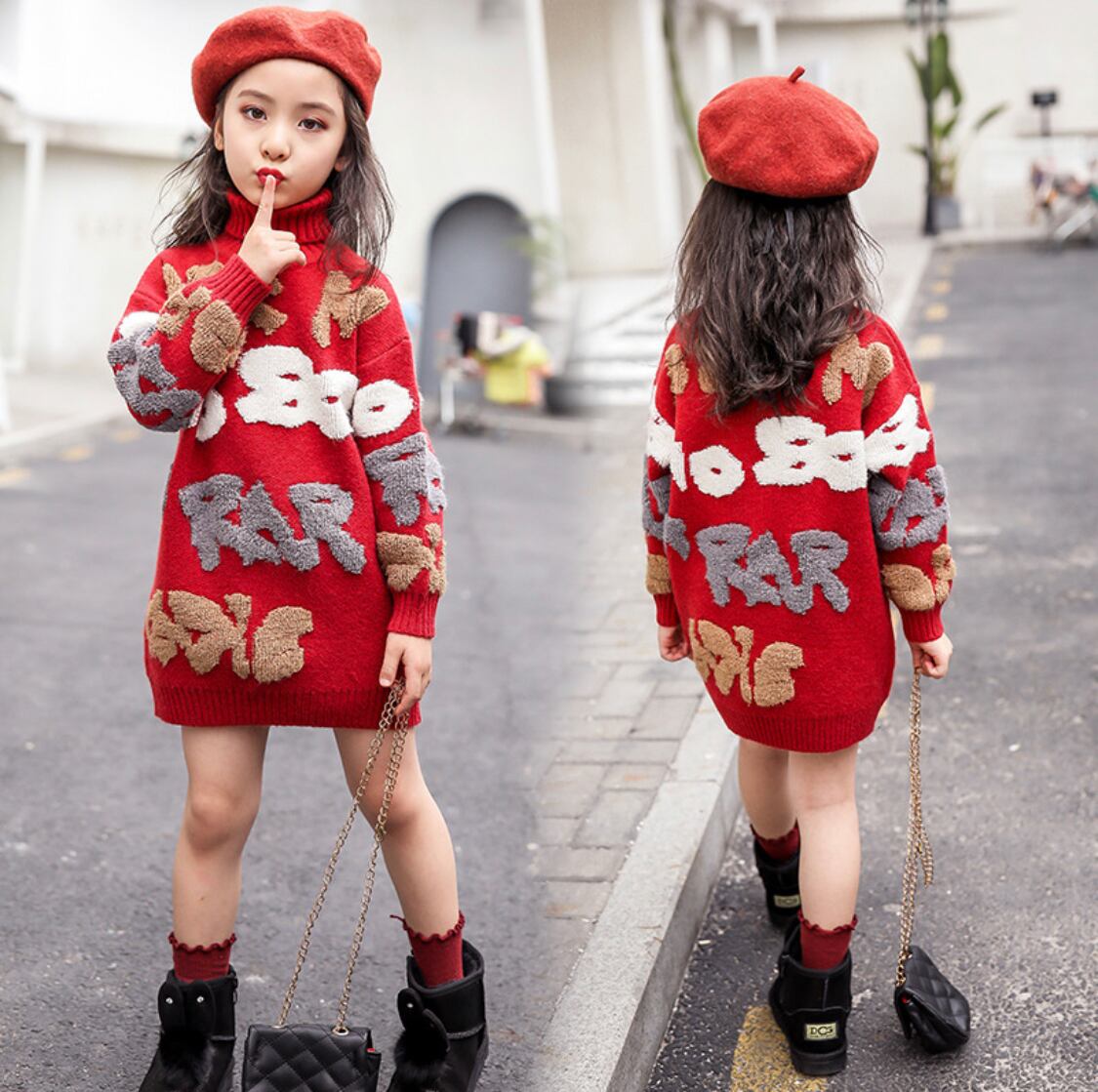 【レッド】ニットワンピ 大人ワンピ 大人可愛い 子ども服 キッズ