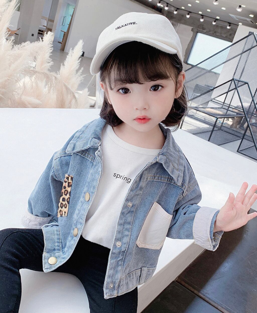 ヒョウ柄デニムジャケット 女の子 女子力アップ デニム ジャケット キッズ 子どもサイズ