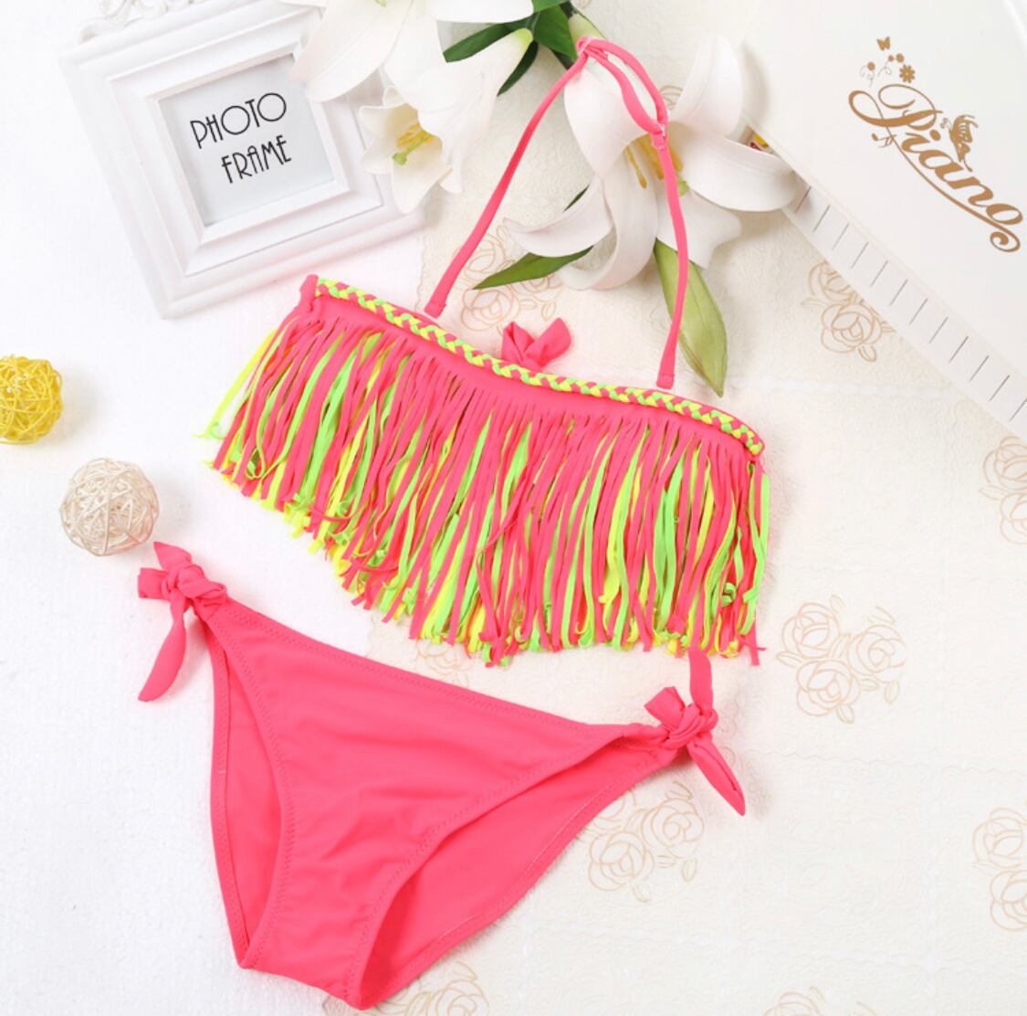 可愛いお色の カラフル 子ども用 ビキニになります。