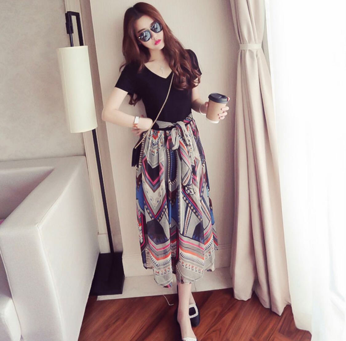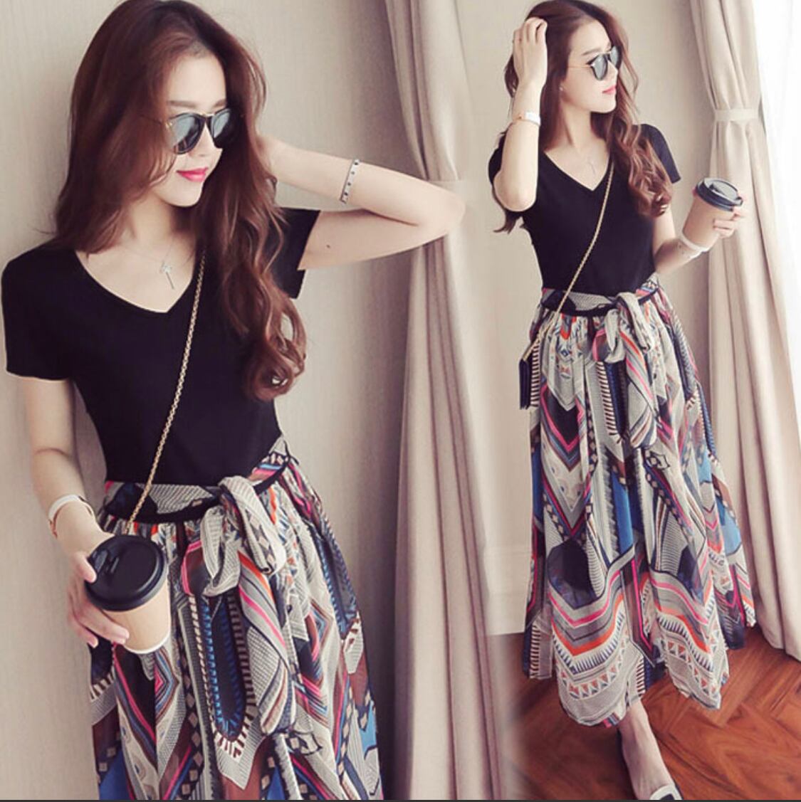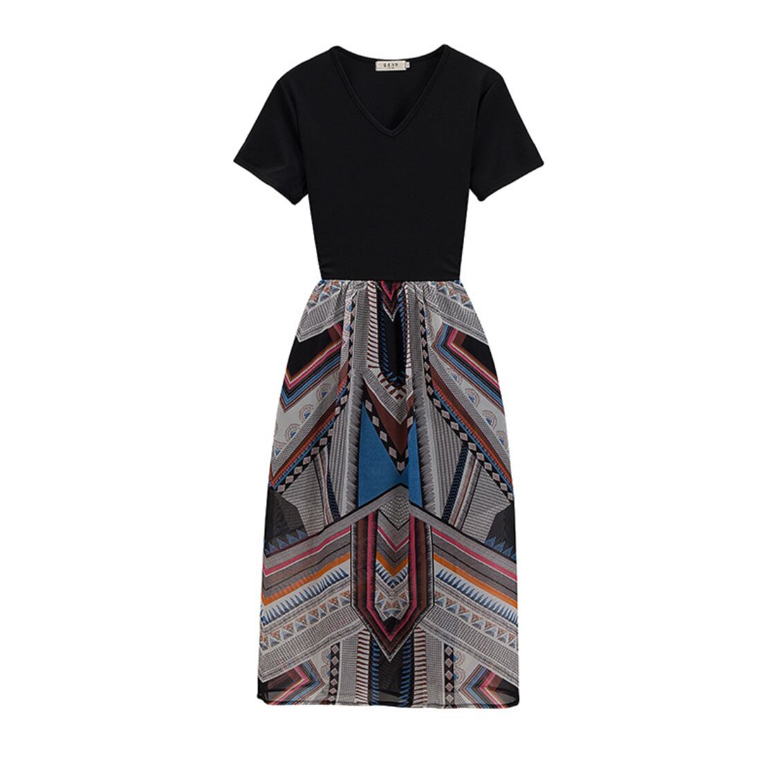 大きいサイズ Vネックトライバル柄スカート ワンピース