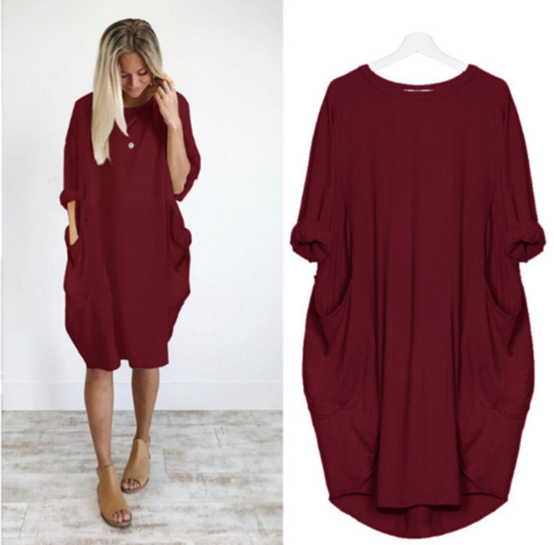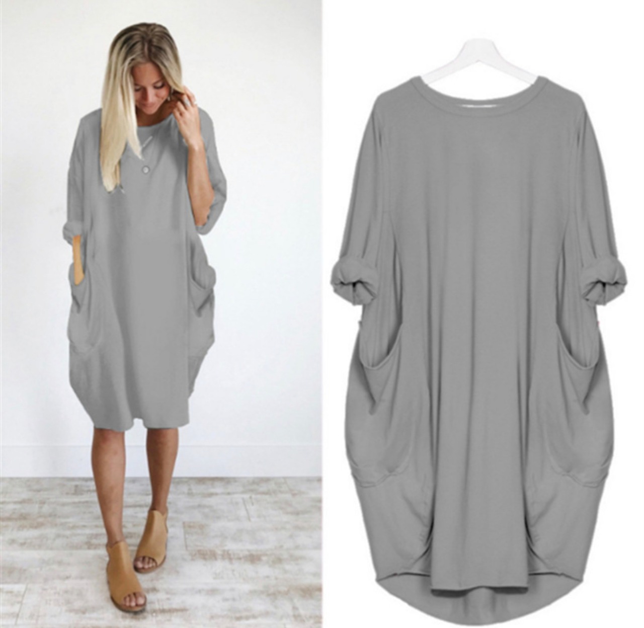 大きいサイズ レディース でかポケット付き Tシャツワンピース チュニック 無地
