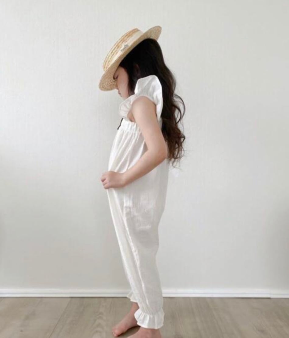 肩フリル ノースリーブ ベビー ジャンプスーツ ショルダーフリルサロペット