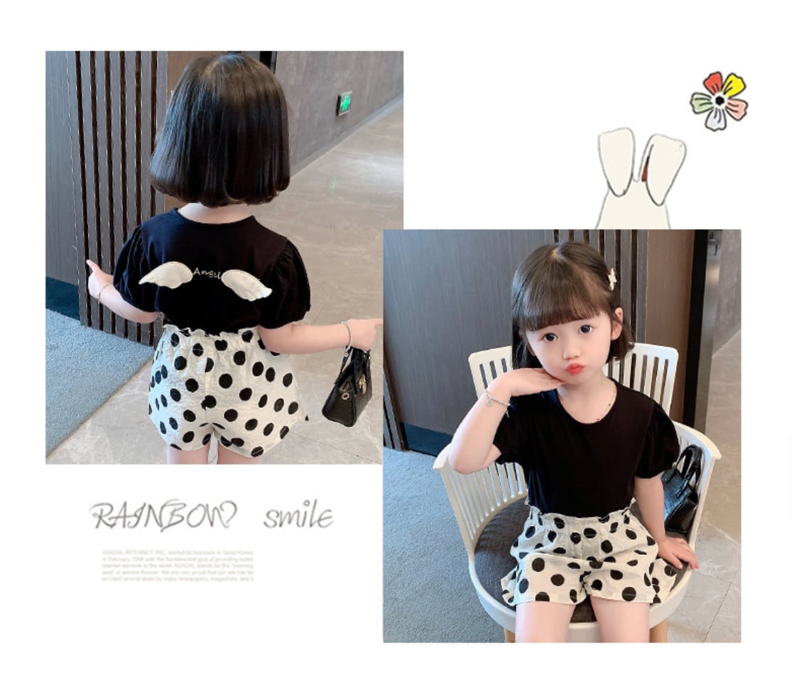 エンジェルTシャツ + ドット柄短パン キッズ 女の子 ベビー 子ども服
